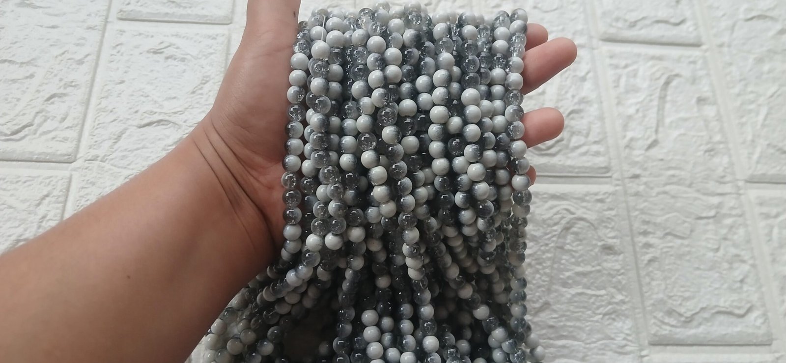 Black Milky White Crackle Beads